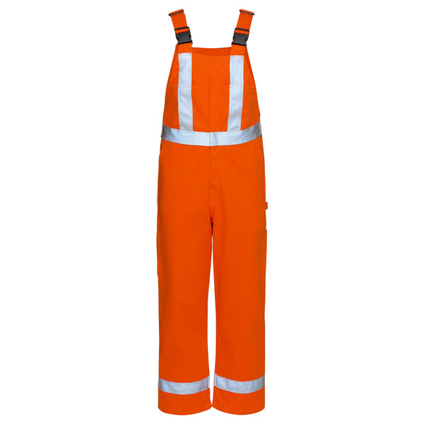 The Bulwark FR Men's Unlined Bib Overall with Reflective Trim delivers safety, durability, and comfort for demanding job sites. Made from a 9 oz blend of 88% cotton and 12% nylon, it features elasticized shoulder straps, reinforced double knees, and two large center front pockets for all-day functionality. With CSA Z96 Class 2, Level 2 certification, it sets a new standard for safety with compliant background material and reflective trim for enhanced visibility. Built tough and designed for Canadian job sites, this bib works as hard as you do.